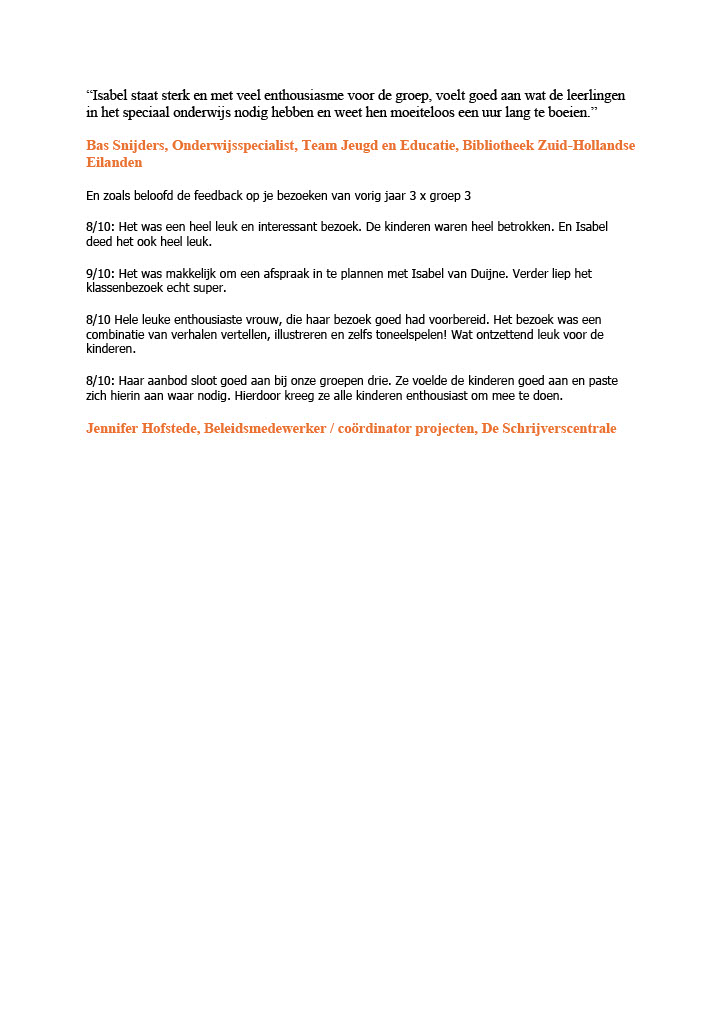 Deze activiteiten kan Isabel van Duijne uitvoeren tijdens een schrijversbezoek: