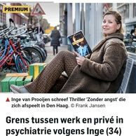 Inge van Prooijen (1988) woont in Zoetermeer met haar man Bob en zoontje Dice (4). Ze combineert het schrijverschap met het moederschap, na een arbeidsverleden in de psychiatrie, ggz- en verslavingszorg. Haar ervaringen in de zorg vertalen zich in verhalen waarin psychologie, verwerking van gebeurtenissen en menselijke complexiteit centraal staan.