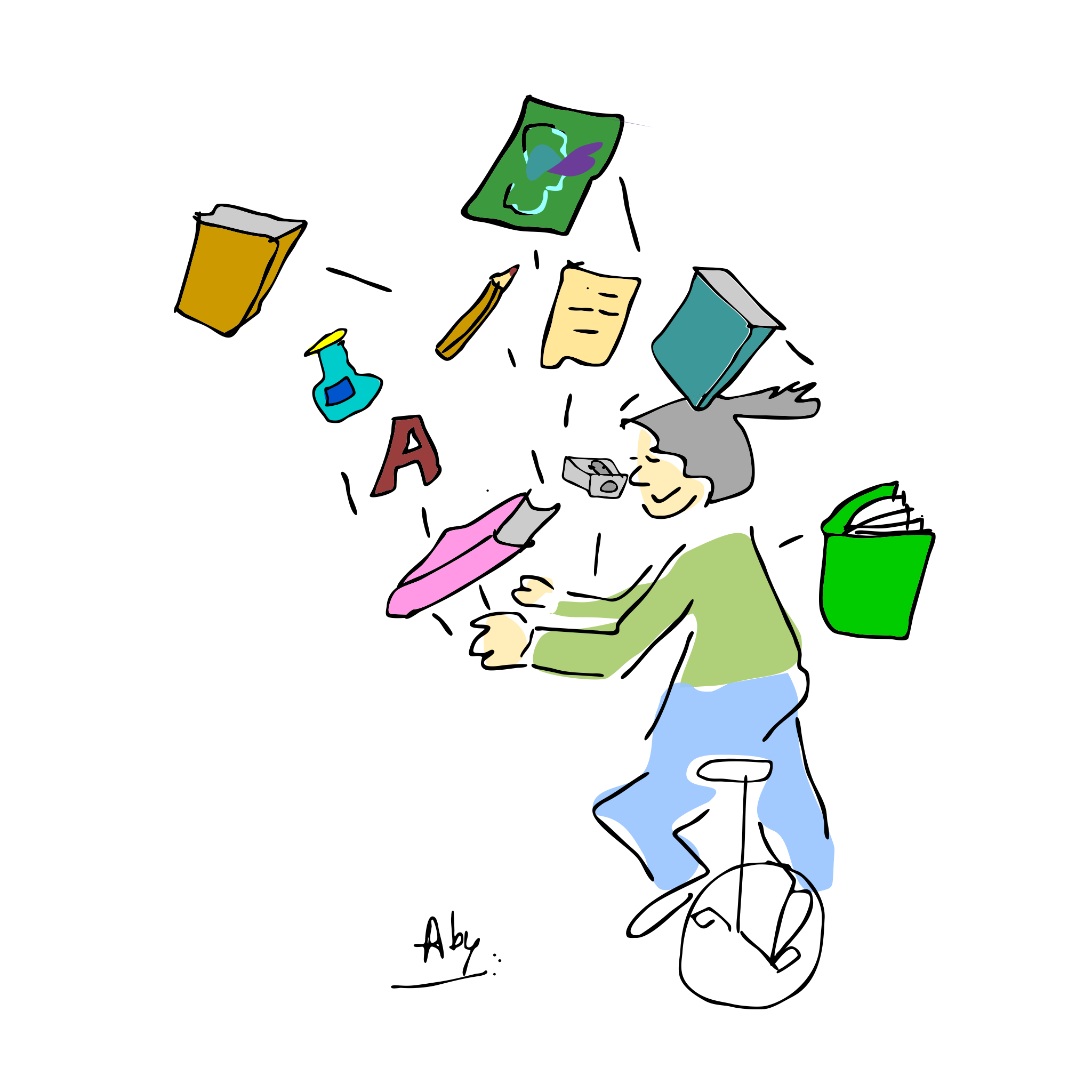 Aby is sinds 2013 schoolschrijver, waarbij hij langdurig aan een basisschool verbonden is en de taalvaardigheid en taalinteresse van kinderen op creatieve wijze stimuleert. Ook staat hij regelmatig als invaldocent voor de klas.