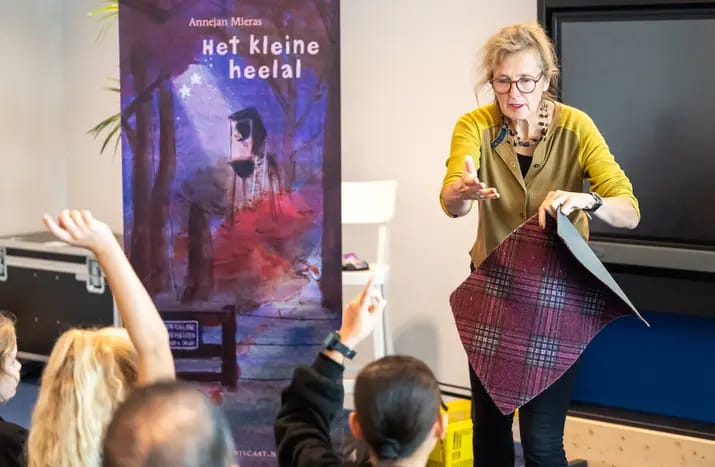 Wat: In 2018 debuteerde Annejan bij Uitgeverij Lemniscaat met ‘Portiek Zeezicht’ (9+). Over deurmatten die verdwijnen en nog veel meer. Naar aanleiding van ‘Homme en het noodgeval’ (9+) dat vol staat met fietsenmakerspoëzie -en ook in Duitsland verscheen- ontving Annejan het Charlotte Köhler-Stipendium als aanmoediging. Dat heeft goed gewerkt want haar campingdroman ‘Het kleine heelal,’ (9+) werd lovend ontvangen en zelfs bekroond met de Gouden Griffel 2024! ‘Zo kundig en zo liefdevol gecomponeerd.’ De verhalenbundel ‘Alle dagen samen’ (7+) -vol bosrandavonturen met Vos, Mus en Mol- is geïnspireerd op haar ervaring als leerkracht met bijzondere schooldagen.