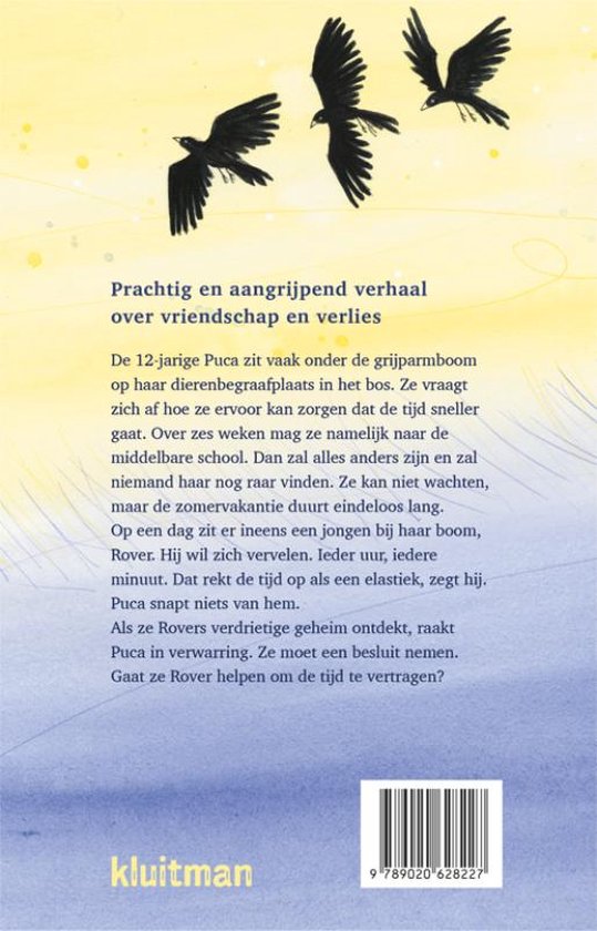 De 12-jarige Puca zit vaak onder de grijparmboom op haar dierenbegraafplaats in het bos. Ze vraagt zich af hoe ze ervoor kan zorgen dat de tijd sneller gaat. Over zes weken mag ze namelijk naar de middelbare school. Dan zal alles anders zijn en zal niemand haar nog raar vinden. Ze kan niet wachten, maar de zomervakantie duurt eindeloos lang. Op een dag zit er ineens een jongen bij haar boom, Rover. Hij wil zich vervelen. Ieder uur, iedere minuut. Dat rekt de tijd op als een elastiek, zegt hij. Puca snapt niets van hem. Als ze Rovers verdrietige geheim ontdekt, raakt Puca in verwarring. Ze moet een besluit nemen. Gaat ze Rover helpen om de tijd te vertragen?